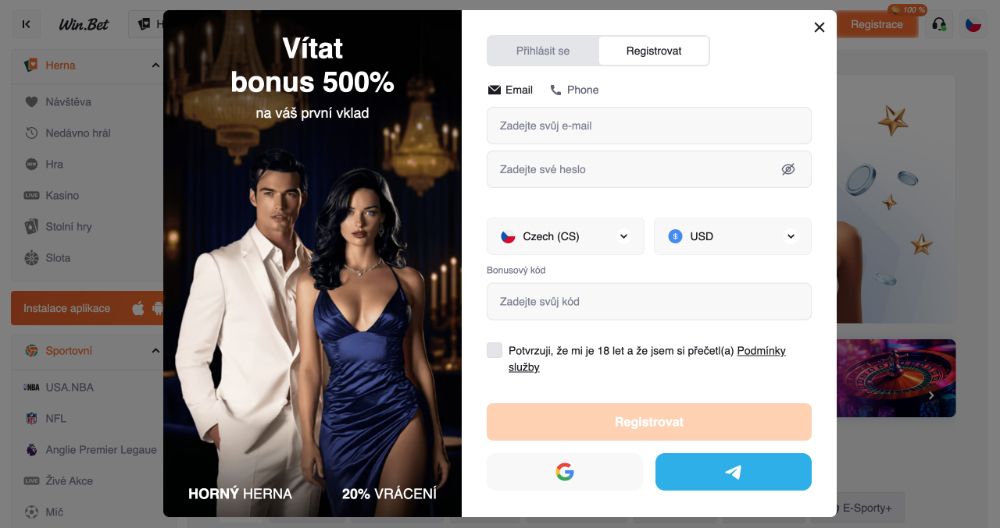 Zaregistrovat se v casinu Win.Bet