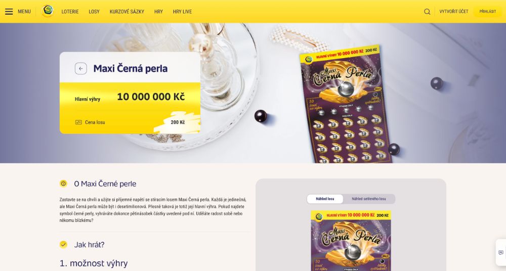 Objevte kouzlo luxusních stíracích losů Maxi Černá perla od Sazky.