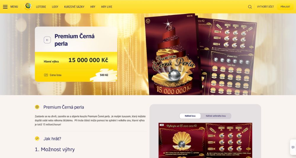 Premium Černá perla je stírací los od Sazky, který spojuje elegantní design s možností vyhrát až neuvěřitelných 15 milionů korun.